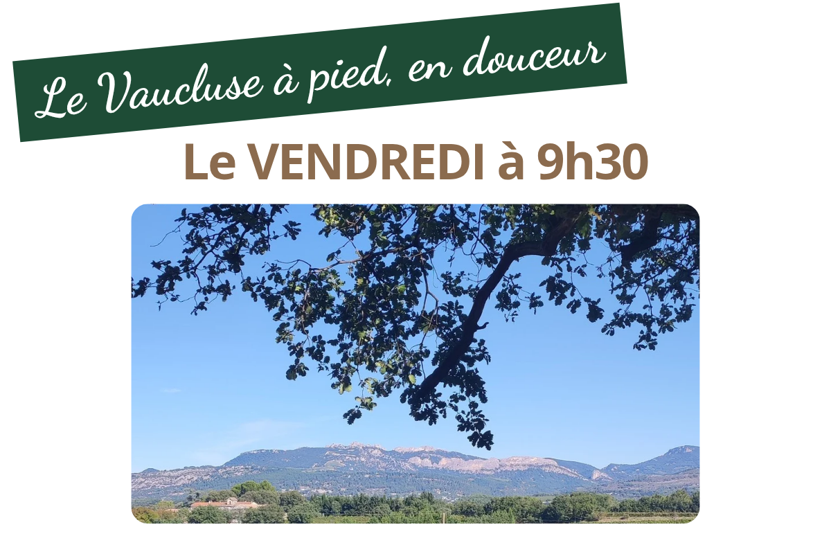 Chaque vendredi matin à 9h30, je vous propose de partir pour une promenade guidée en petit groupe près d’Aubignan, au cœur du Vaucluse : Aubignan, Beaumes-de-Venise, Vacqueyras, Caromb…